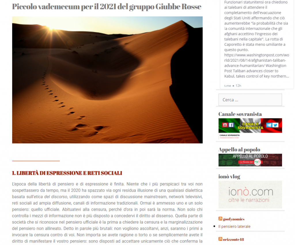 Anche in Italia assistiamo a una situazione analoga. Le manifestazioni estive contro il Green Pass sono la punta dell’iceberg, la testimonianza contingente di un disagio e di un’inquietudine più profonda verso gli stessi capisaldi su cui si fonda il governo Draghi: liberismo, europeismo radicale, smantellamento dello stato sociale e dello stato nazionale, accettazione indiscussa della priorità degli organismi sovranazionali in campo economico, politico e, più recentemente, sanitario sui diritti individuali e sul diritto all’autodeterminazione.