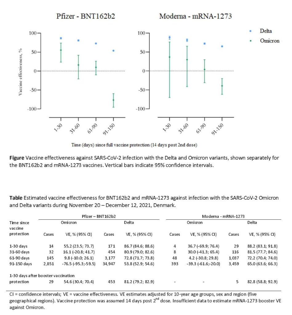 (i) Pfizer conferisce una scarsa protezione il primo mese e poi basta, Moderna nemmeno quello;