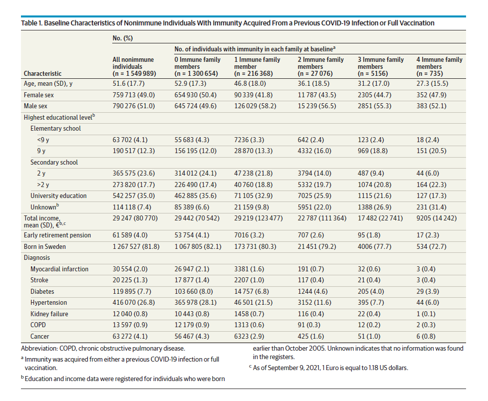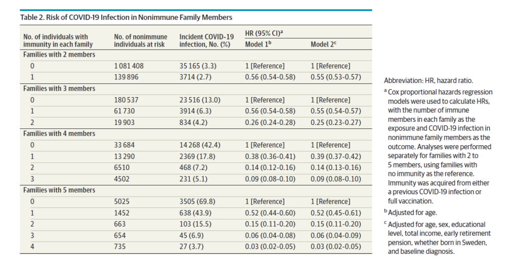 Un recente studio svolto in Svezia su quasi 815.000 famiglie suggerisce che apparentemente vivere con membri della famiglia immunizzati contro SARS-CoV-2 ridurrebbe il rischio di contrarre il COVID-19. I risultati, tuttavia, paiono fornire un quadro più complesso. Qui di seguito il mio commento, che la rivista non ha ritenuto di pubblicare senza, tuttavia, precisarne le ragioni.