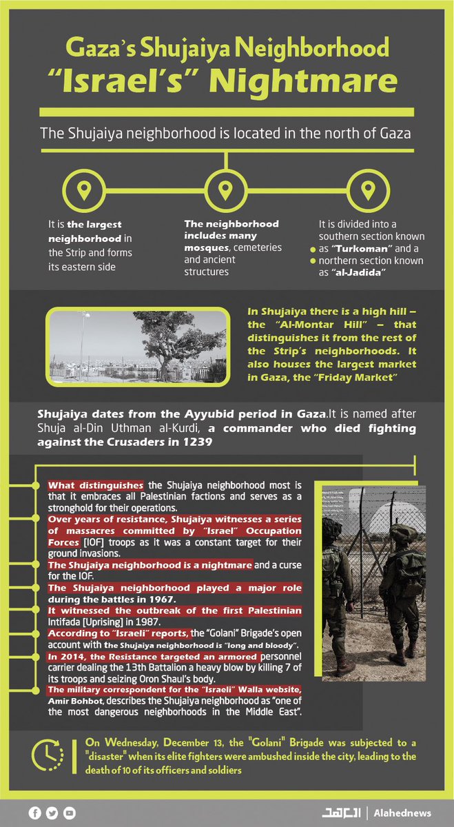 Palestine:Gaza’s Shujaiya Neighborhood: “Israel’s” Nightmare…Palestine:Infographics>>> The Shujaiya neighborhood is a nightmare and a curse for the IOF.https://english.alahednews.com.lb/74673/388