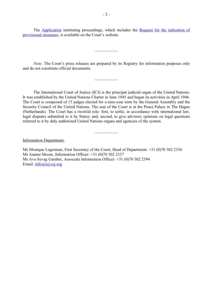 Il Sudafrica ha avviato un procedimento contro Israele davanti alla Corte internazionale di giustizia ai sensi della Convenzione sul genocidio e ha chiesto misure provvisorie. https://twitter.com/PresidencyZA/status/1740798458481803433 The Republic of South Africa institutes proceedings against the State of Israel and requests the Court to indicate provisional measures (icj-cij.org) Ultim'ora | Telegram | X | Facebook | Instagram | YouTube Navigazione articoli IL RITORNO DELLA GUERRA ‘RISOLUTIVA’ PER I BAMBINI PALESTINESI ARRESTATI SOTTO L’OCCUPAZIONE UN’INFANZIA STRAVOLTA