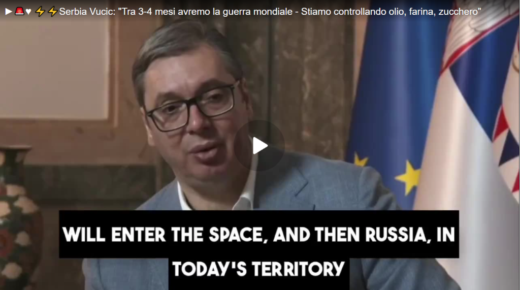 Queste sono le parole del presidente serbo Aleksander Vucic. Sicuramente lo sa. Lui ci sta in mezzo. Pensa che l’Europa entrerà in guerra con la Russia “tra non più di tre o quattro mesi”, se non prima.