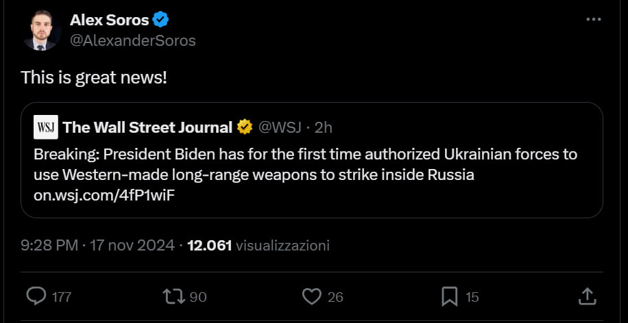 ⚡️ Vogliono l’escalation – Lavrov sull’uso dell’ATACMS da parte dell’Ucraina a Bryansk #G20 pic.twitter.com/I4BUFtwfSu — RT (@RT_com) 19 novembre 2024