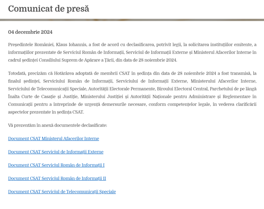 Dunque, ho esaminato attentamente i documenti declassificati dell’intelligence rumena sulla base dei quali sono stati annullati i risultati delle elezioni.