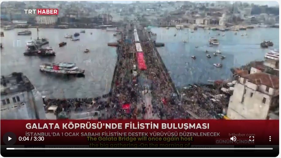 Come se non bastasse, il figlio di Erdogan, Bilal, è stato visto in un video in cui chiedeva un grande raduno pro-Palestina sul ponte di Galata a Istanbul per il 1° gennaio, proprio come avevano fatto lo scorso Capodanno, da cui è tratto il filmato. Ma il grande cambiamento sta nel loro raduno sotto lo stendardo di un nuovo interessante slogan: