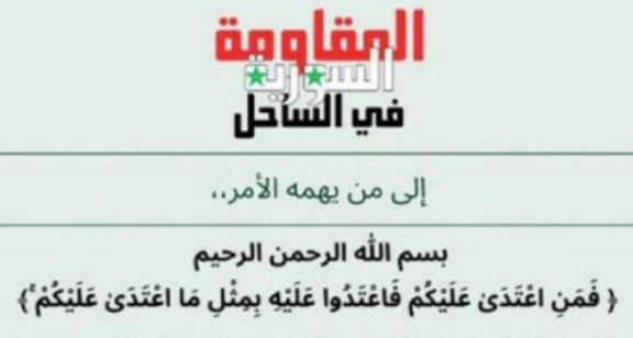 La continuazione dei massacri contro il nostro popolo da parte delle bande armate affiliate alla nuova amministrazione verrà contrastata prendendo di mira i vostri elementi e leader terroristici.