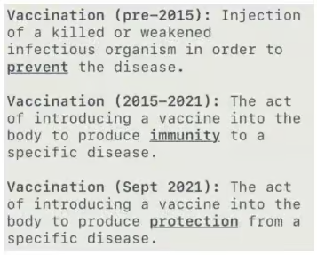 Anche il linguaggio stesso è stato manipolato per accogliere questi nuovi prodotti. Il CDC ha cambiato silenziosamente la definizione di “vaccinazione” più volte: da “l’atto di introdurre un vaccino nel corpo per produrre immunità a una malattia specifica” a semplicemente “produrre protezione”, un cambiamento sottile ma fondamentale che ha abbassato l’asticella dall’immunità effettiva alla mera “protezione”. Non si è trattato di cavilli semantici, ma di una deliberata riformulazione per adattare la definizione a prodotti che non potevano soddisfare lo standard tradizionale. Cambiando il significato stesso di “vaccino”, hanno potuto affermare che questi prodotti di terapia genica appartenevano alla stessa categoria dei vaccini tradizionali, nonostante i loro meccanismi e risultati fondamentalmente diversi.