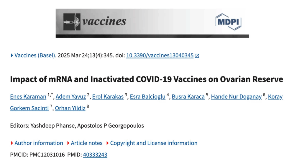 Ha aggiunto: “Recentemente, studi sugli animali hanno rivelato che il vaccino mRNA contro il COVID provoca la distruzione del 60% della riserva ovarica nei ratti “.