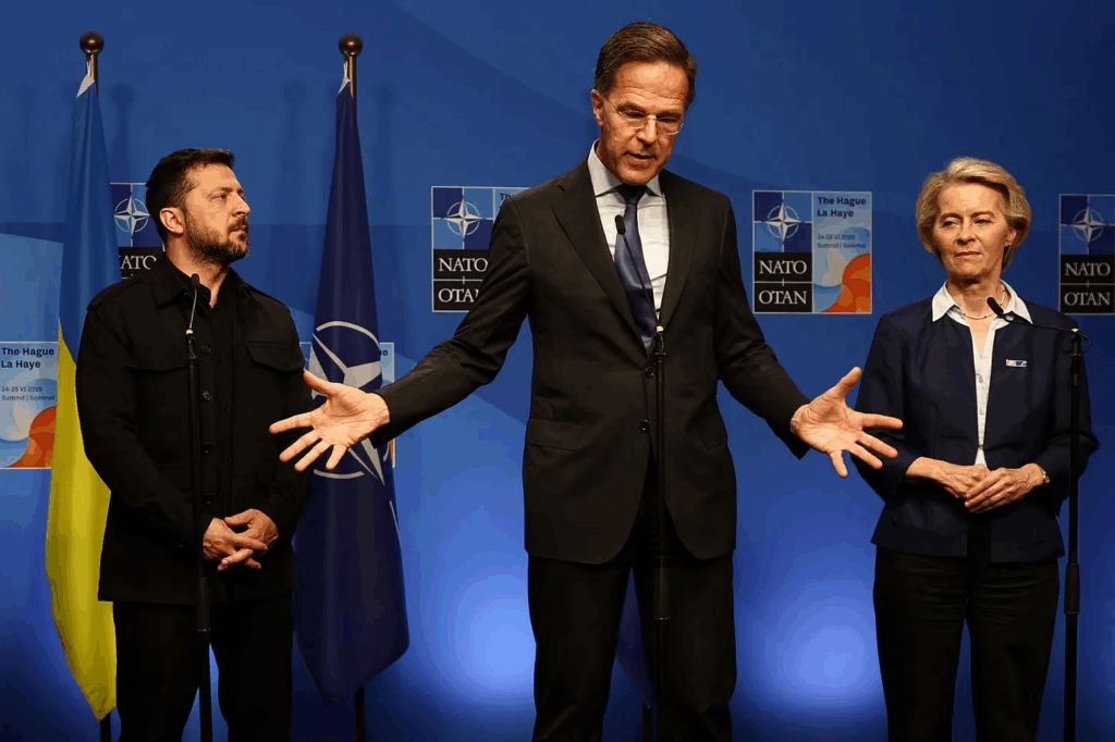 della NATO all’Aia, Paesi Bassi, il 24 giugno 2025. (Jakub Porzycki / NurPhoto via AFP)