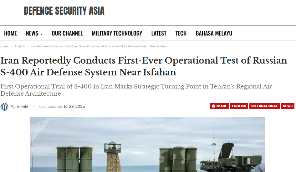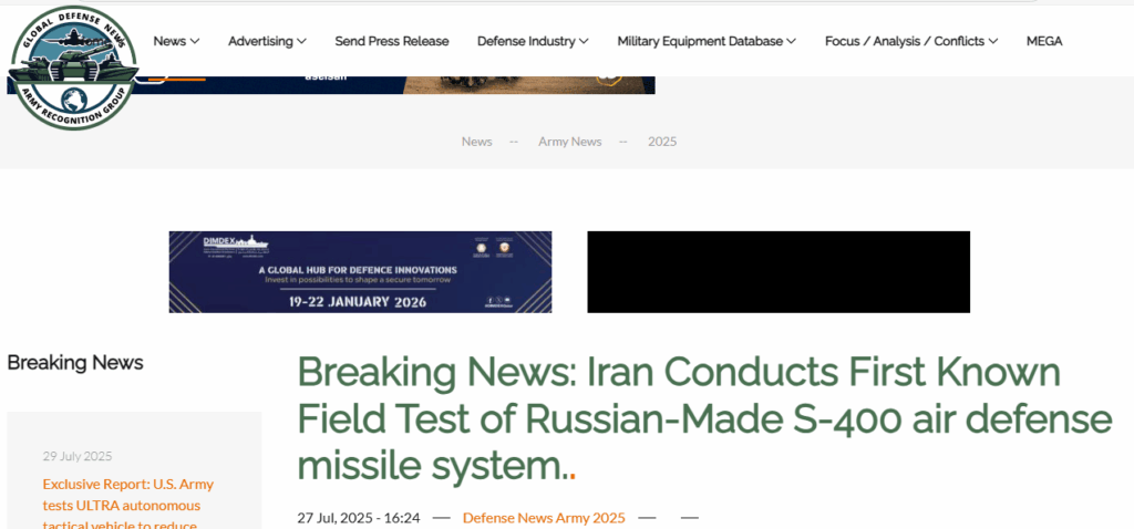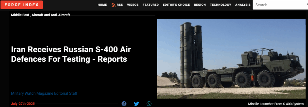La prima notizia sull’S-400 iraniano è stata pubblicata il 27 luglio da un aggregatore di notizie militari in Belgio: