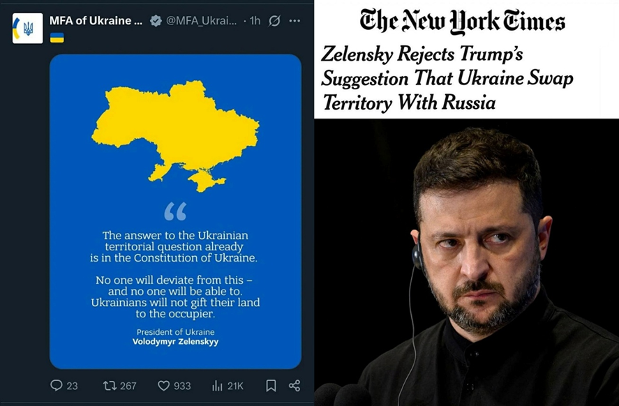 Il problema successivo è che Zelensky ha già categoricamente respinto qualsiasi concessione territoriale, ricordando al mondo che le terre ucraine sono parte integrante della costituzione ucraina e non possono essere cedute: