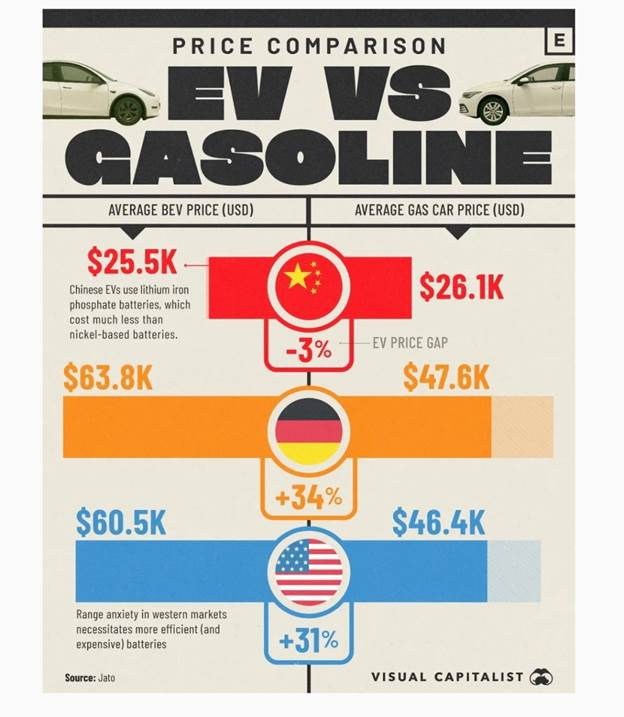 - Per i veicoli elettrici, BYD, Geely, Cherry, Nio, Li Motors, MG, Xiaomi e Aito competono con Tesla e VW