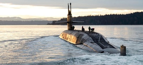 USS Louisiana (SSBN 743) attraversa il Puget Sound il 9 febbraio 2023.