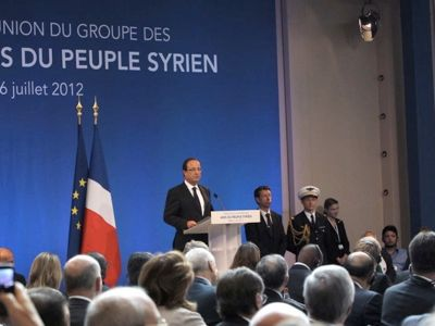 Dopo aver coinvolto la Francia nelle operazioni occidentali contro la Libia e poi contro la Siria, a febbraio 2012, di fronte al fiume di sangue che stava alimentando, il presidente Sarkozy si ravvide. Spiacendo ai suoi “amici statunitensi”. Che per questo fecero in modo che non fosse rieletto. Lo rimpiazzarono con François Hollande, che rilanciò immediatamente la guerra, convocando a Parigi, con Hillary Clinton, il 6 luglio 2012, la terza riunione del Gruppo degli Amici del Popolo Siriano.