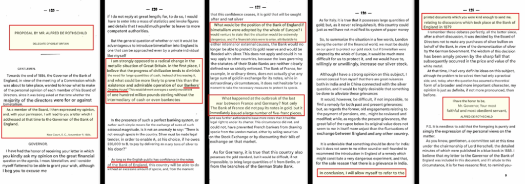 Il percorso documentario non inizia con la teoria, ma con la pratica. Nel 1886, Alfred de Rothschild, allora direttore della Banca d’Inghilterra, scrisse un articolo [18] indirizzato al Governatore, che descriveva il sistema di compensazione dei banchieri di Londra. Il documento sarebbe ricomparso sei anni dopo, alla Conferenza monetaria internazionale di Bruxelles del 1892.