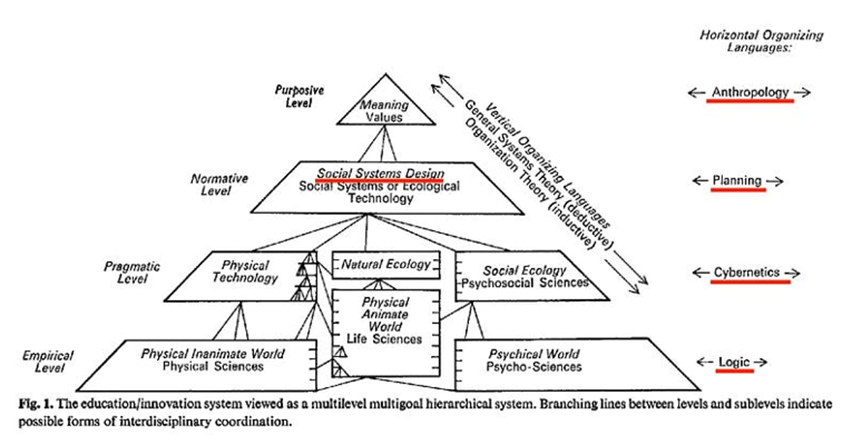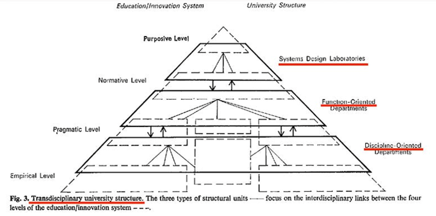Prima di fare nomi, dobbiamo capire perché alcune posizioni all’interno dell’architettura contano più di altre. Per farlo, torniamo all’articolo che ha silenziosamente infestato questo Substack: “Inter-and Transdisciplinary University: A Systems Approach to Education and Innovation ” di Erich Jantsch [1].